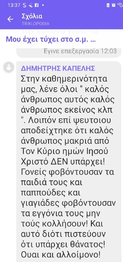 μέσω Viber την κατωτέρω νηφάλια σκέψη του που με την άδειά του δημοσιεύω
